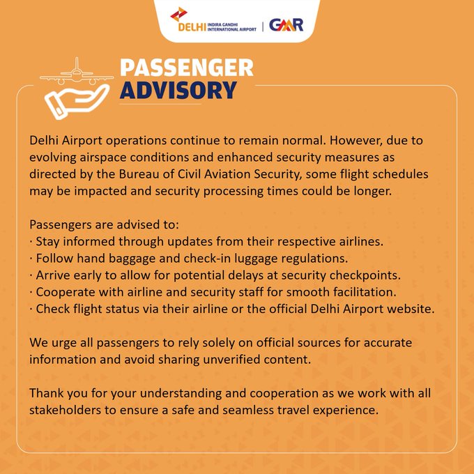 यात्रियों से कहा गया है कि वे अपनी एयरलाइनों के संपर्क में रहें, सोशल मीडिया पर असत्यापित जानकारी साझा न करें, और केवल अधिकारिक स्रोतों से ही अपडेट प्राप्त करें।